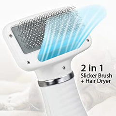Our 2 in 1 pet grooming dryer saves your time in drying your pets. The slicker brush is designed to remove any debris, loose hair and mats/knots in the fur. When hair drying and fur grooming are combined, your furry babies will fall in love with it!