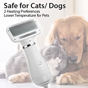 The hair dryer has a lower temperature than a human hair dryer. Two levels of heating give your furry friends great protection from scalds.Please note that it could take more time to dry a larger or hairy dog