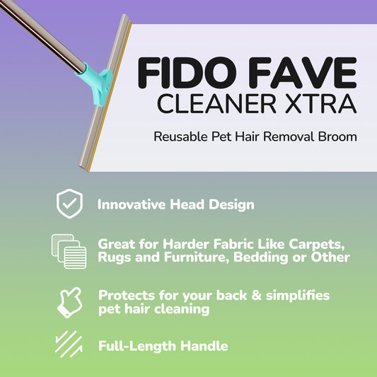 Fido Fave Xtra Pet Hair Removal Broom Reusable Carpet Rake with 131cm/ 51in Handle, Great for Dog and Cat Hair Remover