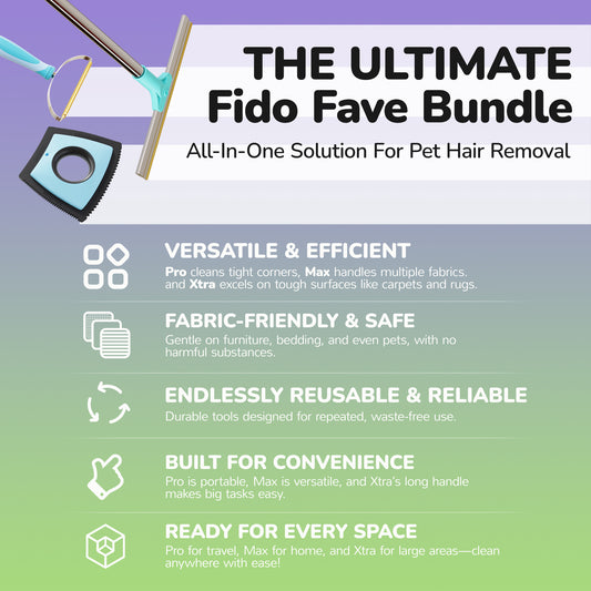 Fido Fave Max Pro Pet Hair Remover Bundle, Reusable Dog Cat Hair Removal Tool Set for Home, Car Upholstery, Ideal for Stubborn Pet Fur on Carpets, Pet Beds, Effective Solution for Pet Owners
