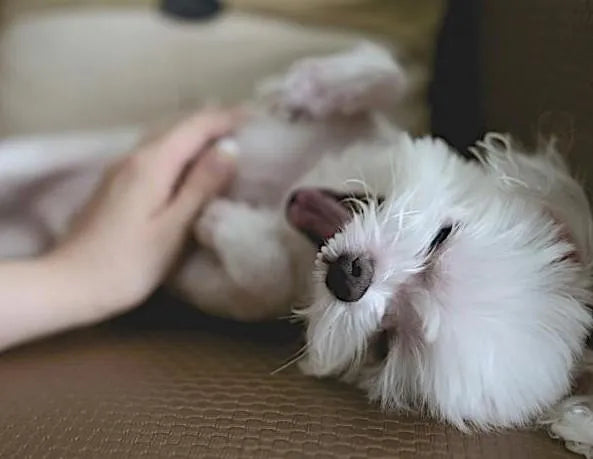 Número 8 exponen su barriga . Si tu perro se da vuelta y muestra su barriga a tu lado, es señal de que está feliz. Los perros que exponen su barriga están en una posición muy vulnerable, piden cariño en forma de caricias en el vientre, muestran consuelo, satisfacción y confianza. El cuerpo relajado de tu perro anticipando una mano para acariciarlo o jugar con él es un signo seguro de felicidad.