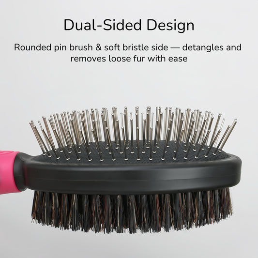 Fido Fave Pet Grooming Brush & Metal Comb – Double-Sided Deshedding and Bathing Brush with Stainless Steel Comb for Dogs and Cats – Tangle Removal, Hair Care & Shedding Control